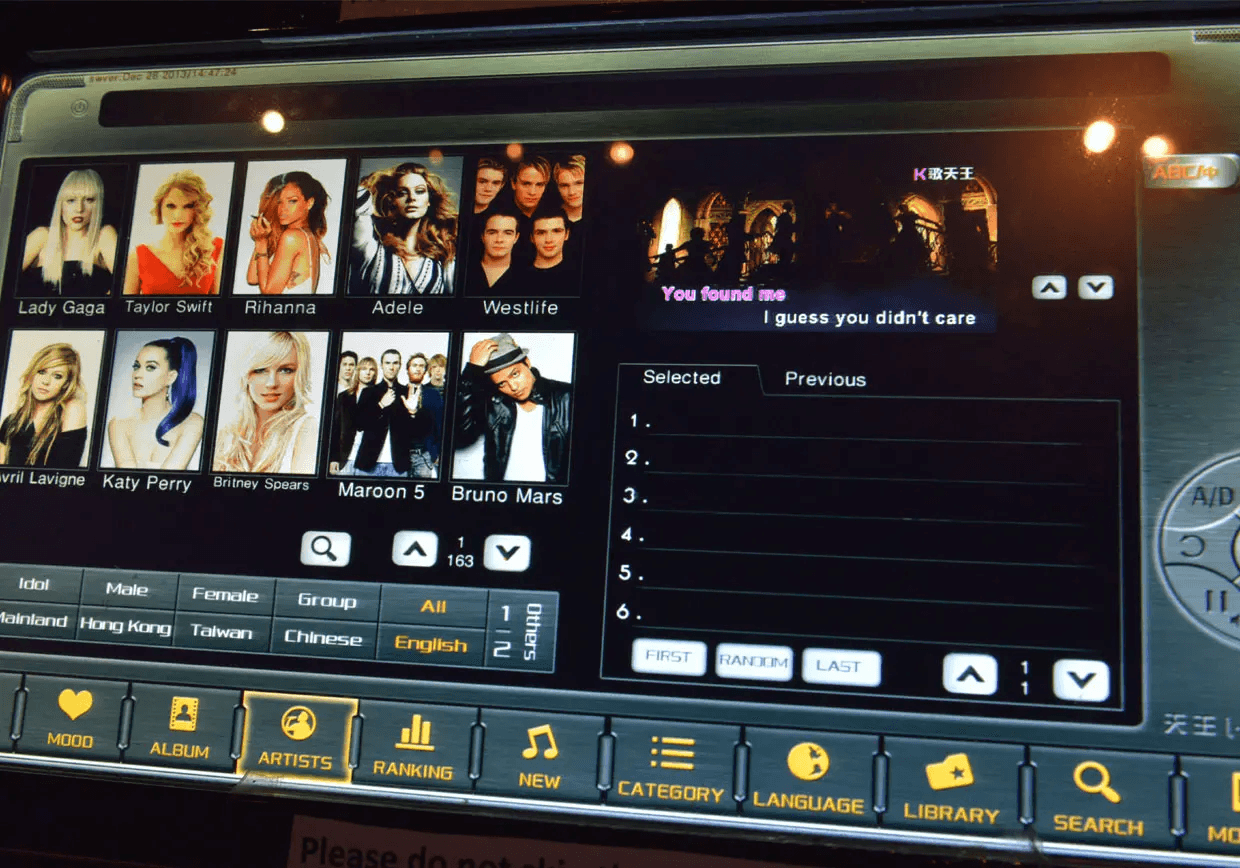 FM卡拉OK还有丰富的中文和韩文歌曲供您选择。